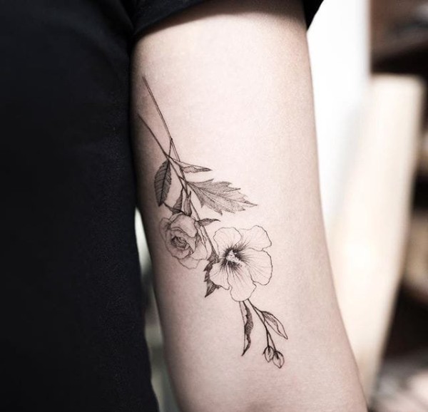 男人大臂黑白彼岸花骷髅_黑白纹身图案大全_纹身图吧