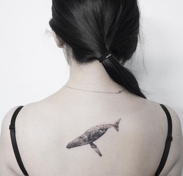 女生后腰纹身黑白灰风格抽象线条纹身图案
