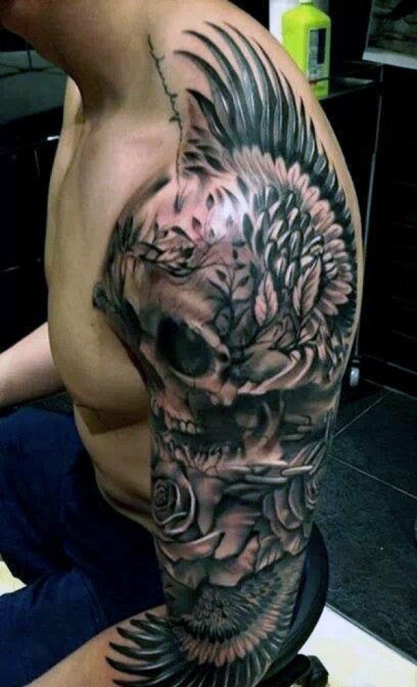 男性手臂上帅气的半袖纹身图案