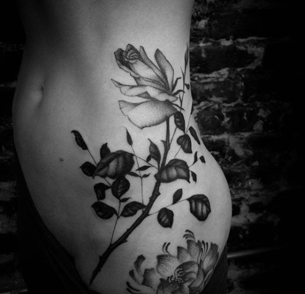 性感的黑灰色花卉纹身图案来自纹身师塔利