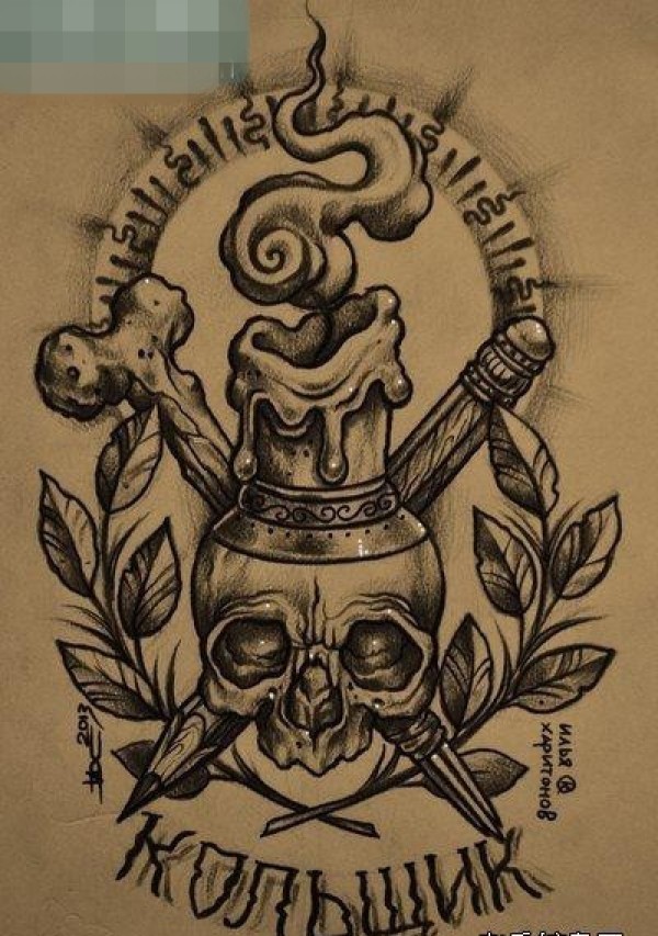 精致的骷髅蜡烛纹身图片欣赏