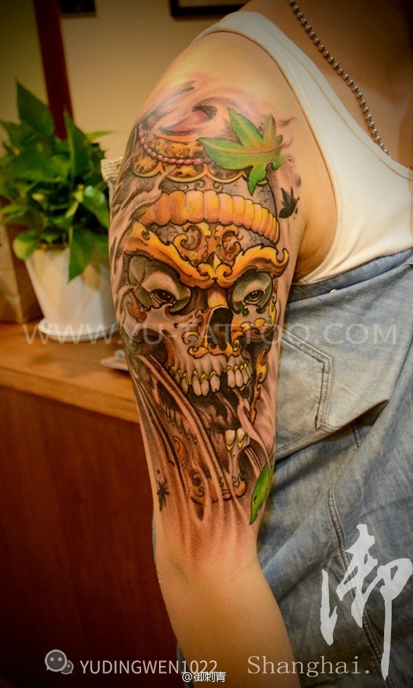 枫叶纹身骷髅文身彩色刺青_男士小图_骷髅纹身图案大全_纹身图吧