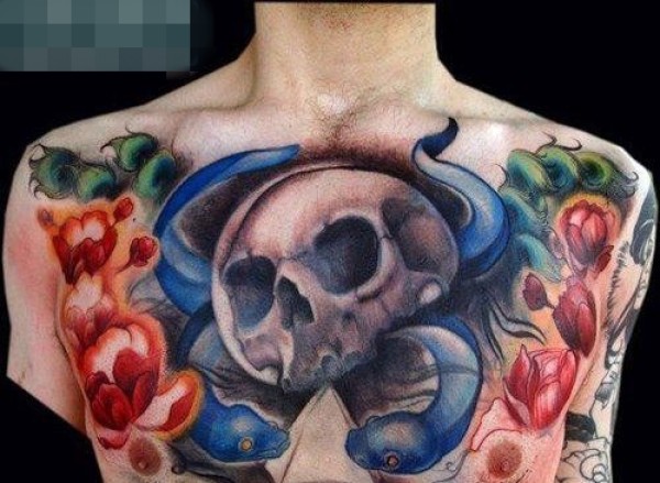 男人前胸时尚很酷的骷髅纹身图案