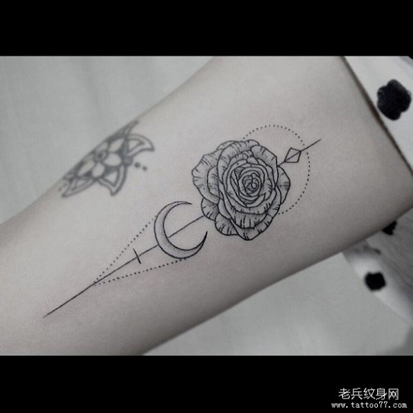 小臂玫瑰月亮点刺线条小清新纹身图案
