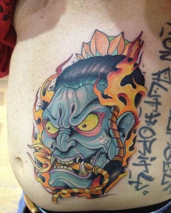 腹部欧美般若纹身图案