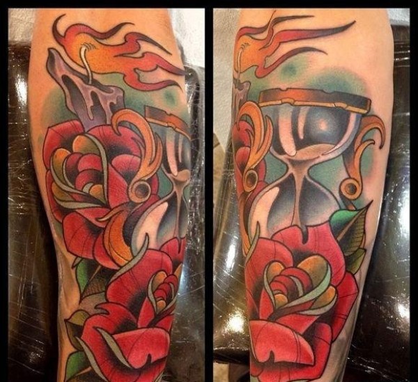 漂亮的school风格沙漏纹身图案