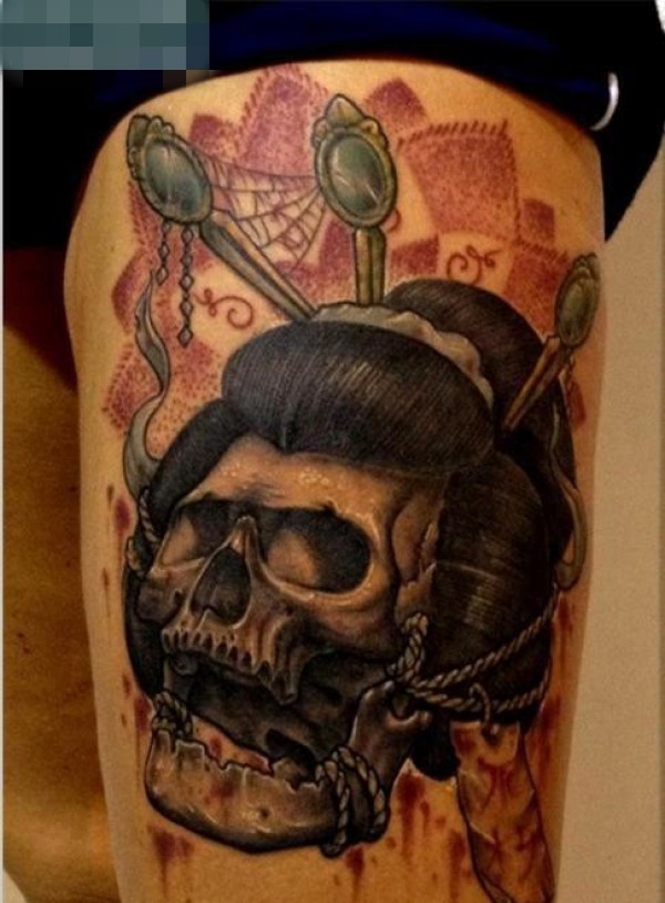 个性时尚的艺妓骷髅纹身图案