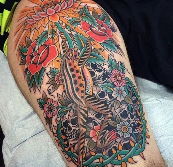 德国恐龙纹身眼镜蛇和卡通鳄鱼纹身水彩动物图案纹身