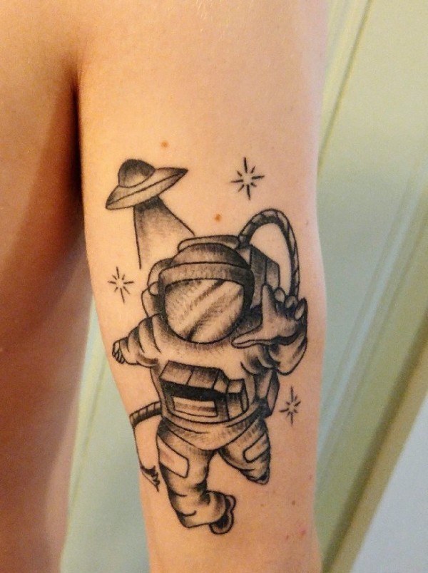黑色素描纹身宇宙飞船和宇航员人物纹身图片