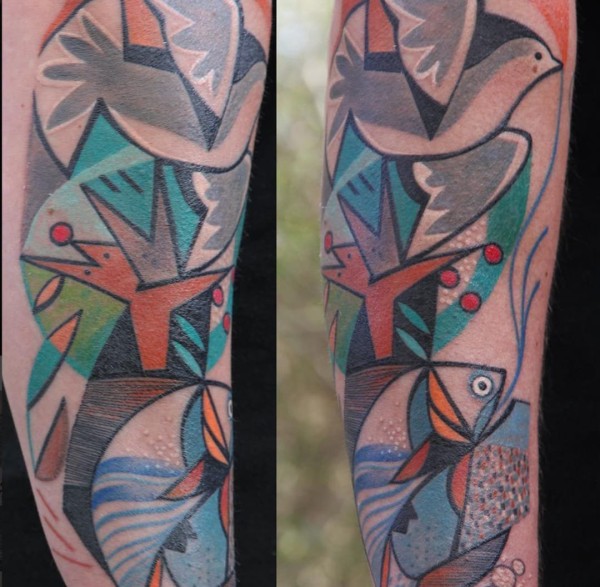 立体几何的现实主义人体艺术纹身图案来自纹身师彼得