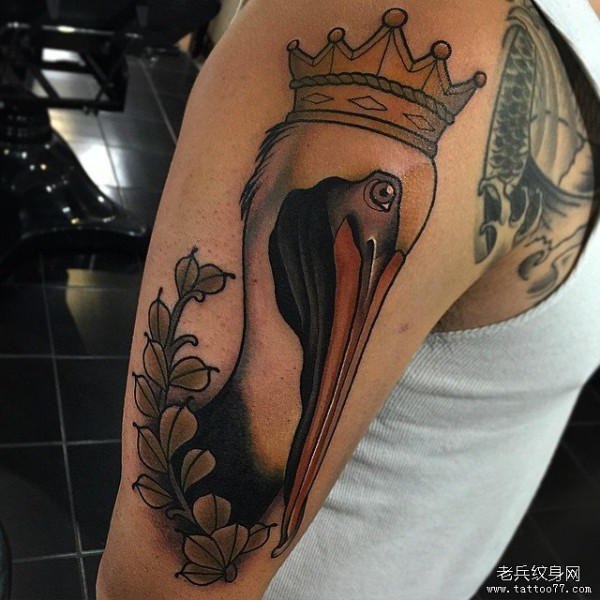 大臂欧美风new school天鹅皇冠纹身图案