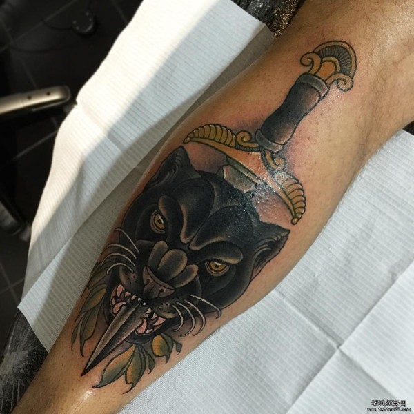 花腿纹身--一组大黑腿纹身图案作品欣赏