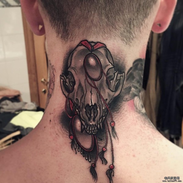 颈部欧美鸟头骨骷髅宝石纹身图案