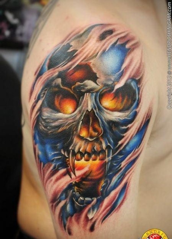 大臂炫彩骷髅纹身图案