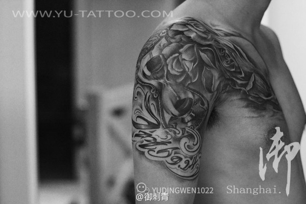 女生肩花纹身_15张女性双肩对称的肩花纹身图案作品图片
