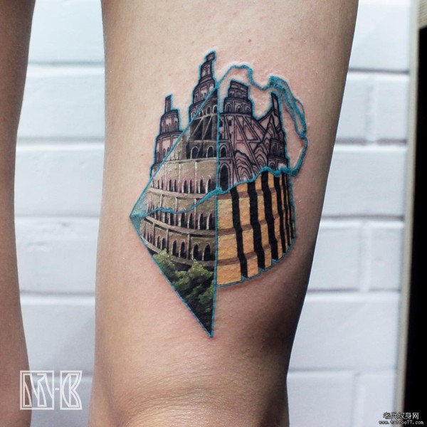 大腿彩绘new school风景纹身图案