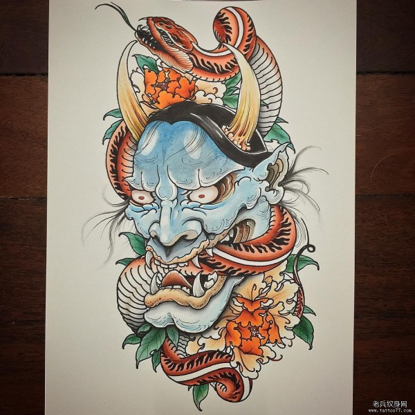 传统艺妓般若纹身图案手稿