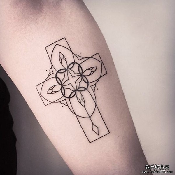 小臂简单的几何线条十字架纹身图案