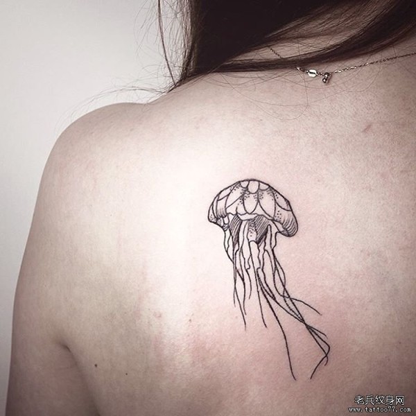 女生背部线条小清新可爱的水母纹身图案