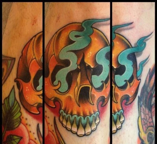枫叶纹身骷髅文身彩色刺青_男士小图_骷髅纹身图案大全_纹身图吧