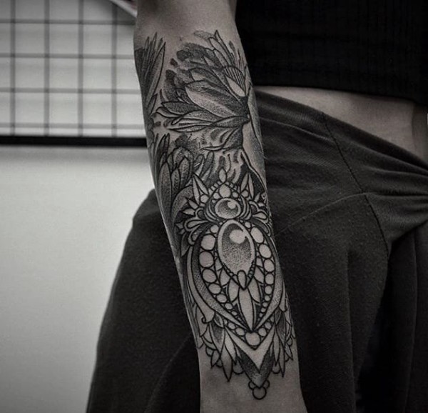 精致的黑色几何装饰风格手前臂纹身图案来自塔拉斯