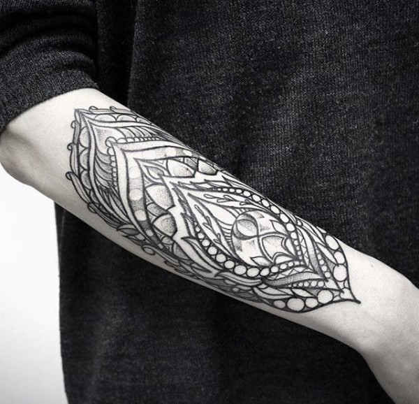 精致的黑色几何装饰风格手前臂纹身图案来自塔拉斯