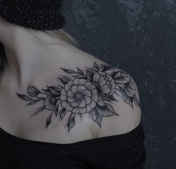 后肩唯美花藤英文图案图片_植物纹身图案大全_纹身图吧