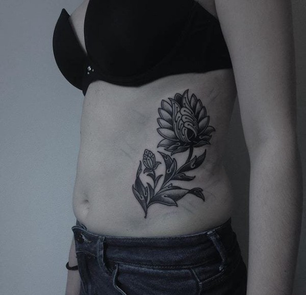 令人难以置信的黑色植物花纹身图案来自吉纳