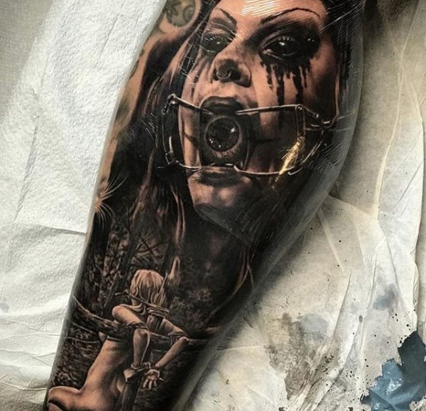 超恐怖的黑灰色现实主义纹身图案来自纹身师乔恩