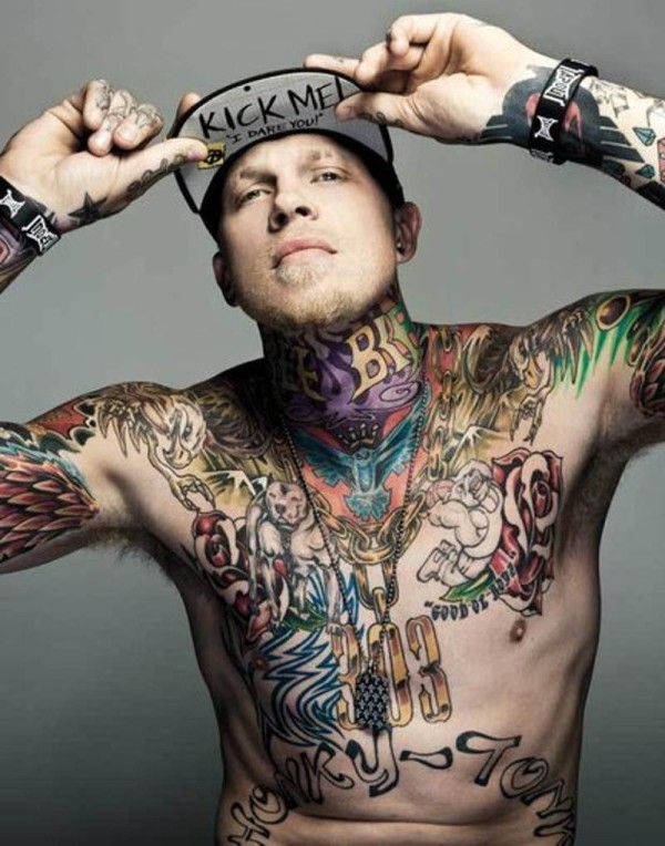 明星鸟人安德森彩绘颈部花臂腹部纹身全景展