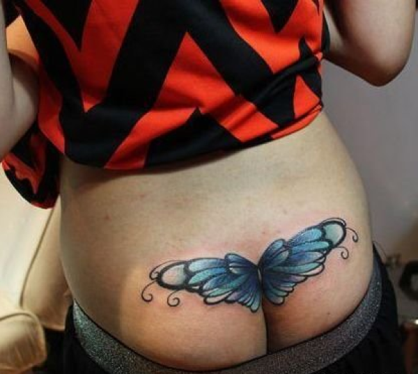 女孩子臀部彩绘抽象的翅膀刺青图片