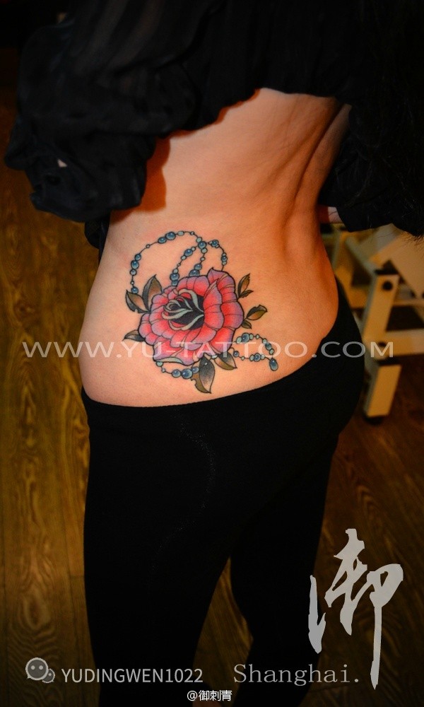 侧腰珠链搭配school玫瑰,好的身材搭配性感的图