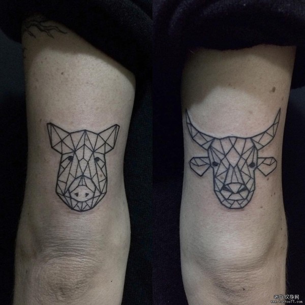 大臂几何线条猪牛纹身图案