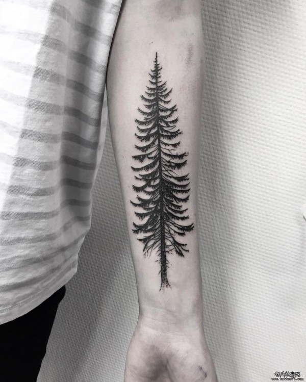 小臂黑灰树纹身图案
