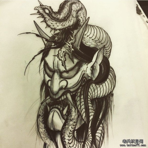 能面万媚纹身手稿_52张日式能剧面具纹身手稿图案素材欣赏