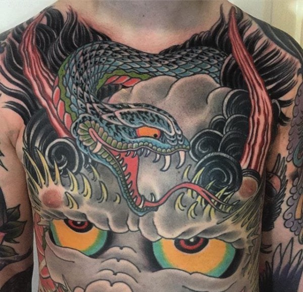 巨大的黑灰色满胸纹身图案大全来自纹身师格雷格