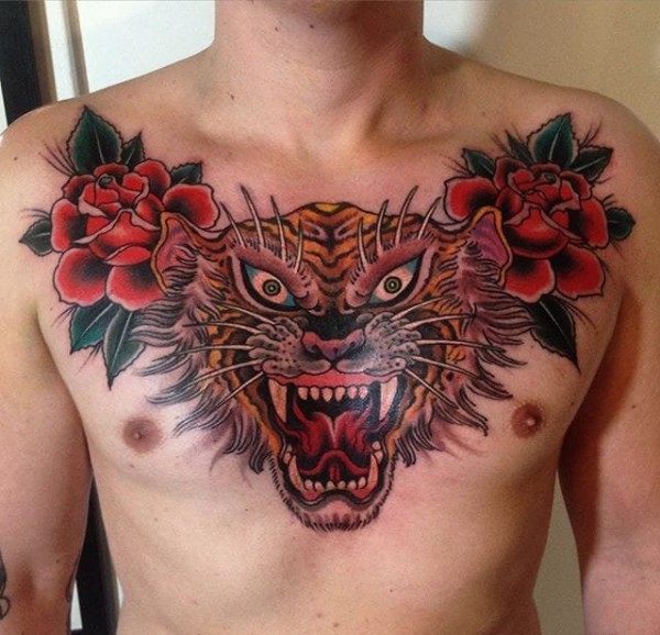 巨大的黑灰色满胸纹身图案大全来自纹身师格雷格