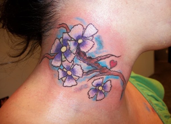 男人脖子彩色燕子刺青图案图片_脖子纹身图案大全_纹身图吧