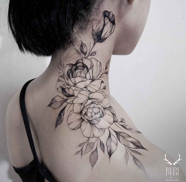 30款男性超帅气的黑灰色脖子纹身图案大全