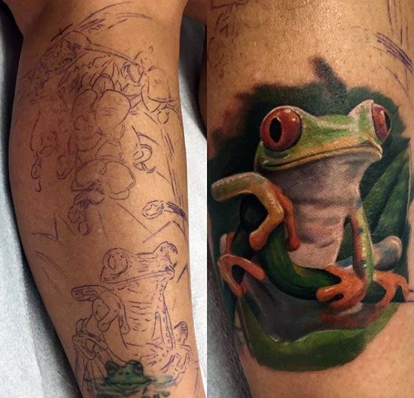 多款超逼真的现实主义风格彩色青蛙纹身图案