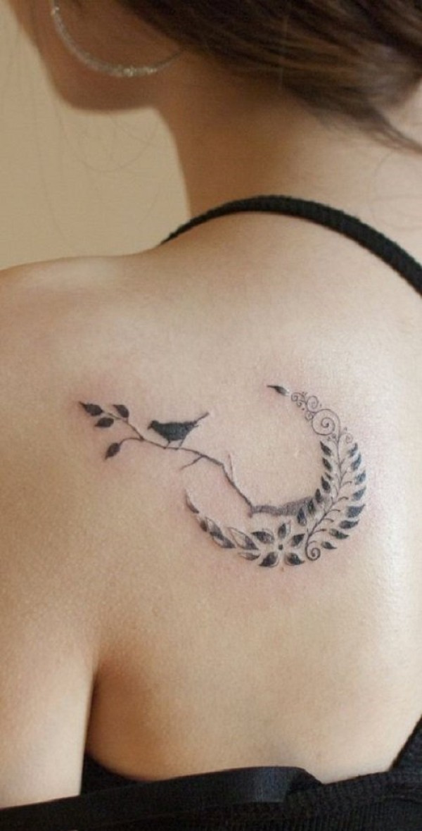 女生后腰纹身黑白灰风格抽象线条纹身图案