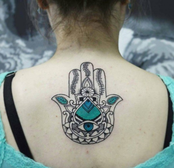 多款女孩背上漂亮的法蒂玛之手纹身图案