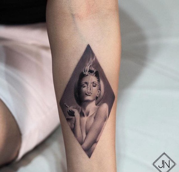 非常奇特的黑灰色的超现实主义风格纹身图案