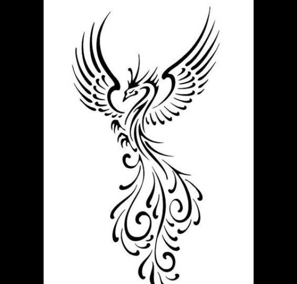 几款美丽的黑色凤凰部落图腾纹身图案手稿素材材,黑色,部落