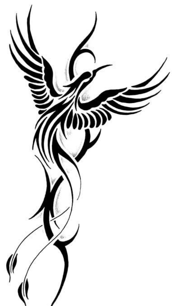几款美丽的黑色凤凰部落图腾纹身图案手稿素材材,黑色,部落