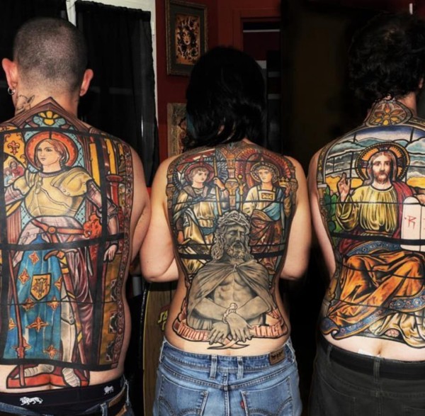 教堂风格的彩色玻璃诸神肖像纹身图案来自米卡埃尔