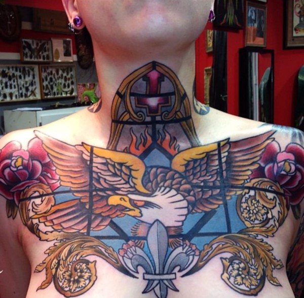 教堂风格的彩色玻璃诸神肖像纹身图案来自米卡埃尔