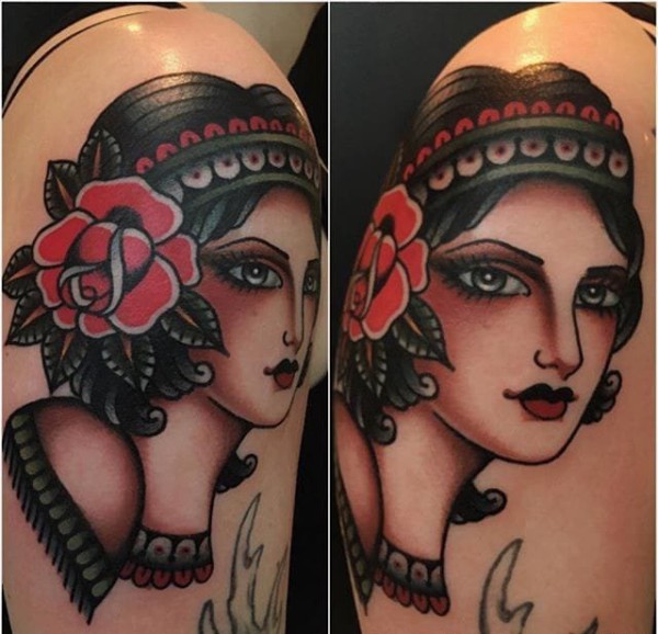 精致的传统风格人物纹身图案来自莫伊拉