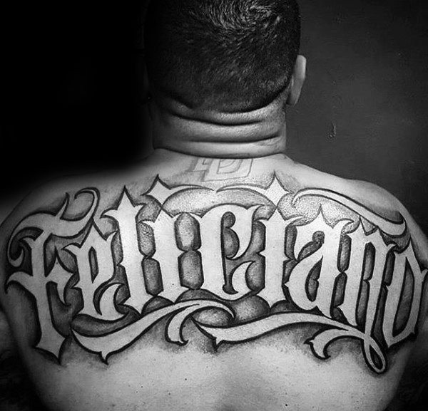 男性9款背上大刻花体英文字纹身图案