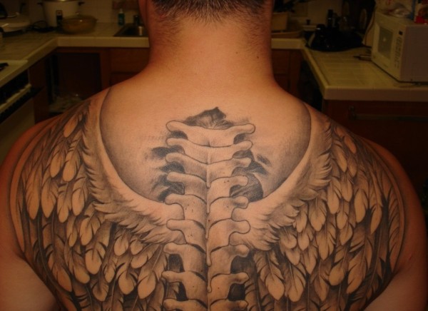 男性背上帅气的天使翅膀纹身图案